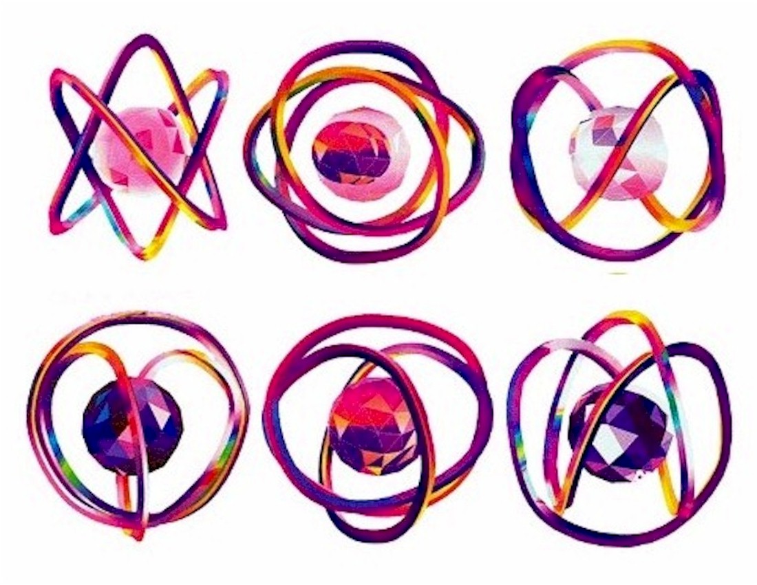 If a torus is divided into regions, then it is always possible to color the regions with no more than seven colors so that neighboring regions have different colors. Arthur Young, who viewed the universe as a process purposely set in motion, believed the seven-colored regions of a torus might correspond to seven steps in its three-dimensional process. Other even more basic sources of the principle of seven expressed in three dimensions may be realized when processes such as the “Laws of Form” as developed by Dr. George Spencer-Brown are studied further. The Laws of Form, at once a work of mathematics and of philosophy, emerged from Spencer-Brown’s work in electronic engineering and mathematical logic around 1960. Spencer-Brown referred to the mathematical system of Laws of Form as the “primary algebra” and the “calculus of indications.” Laws of Form have influenced Kauffman who modified and extended its primary algebra with interesting consequences. Kauffman’s research into how Mereon is brought into three dimensions agrees with Lynnclaire’s description of it as a universal symbol of the energy of creation which she experienced as pure love.