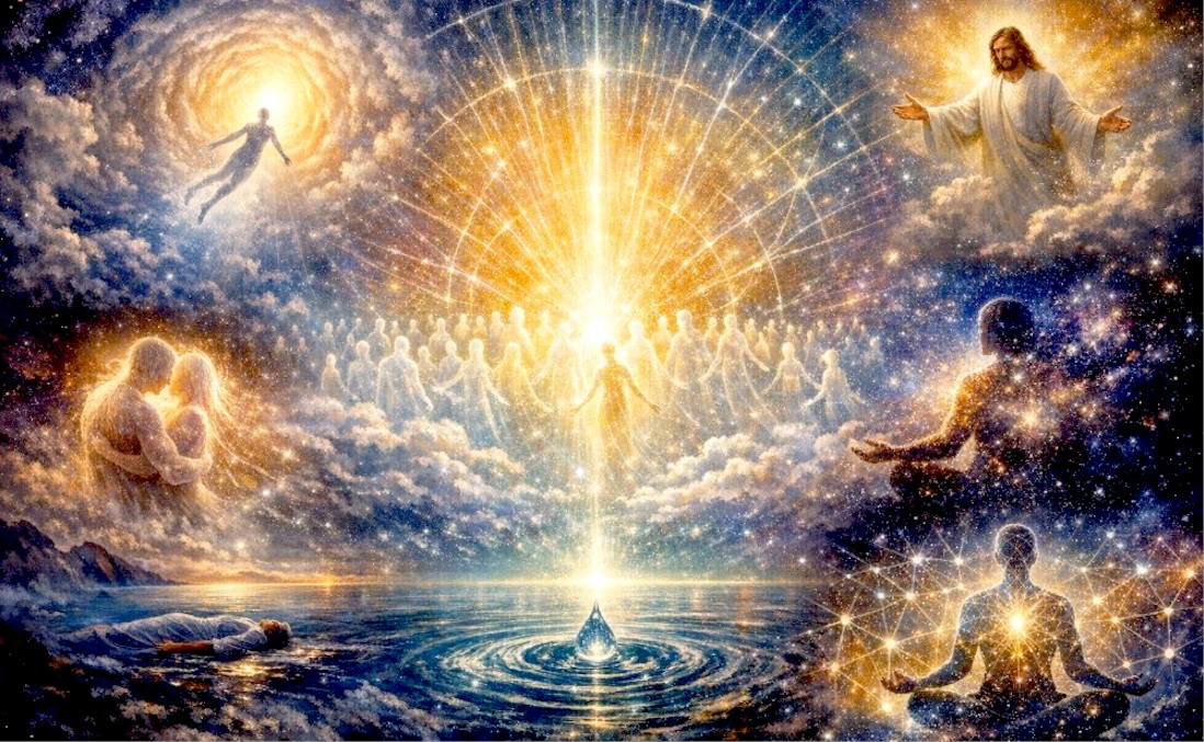 Within many NDEs and spiritual traditions, the idea of soul merging is revealed as the turning point where reincarnation either continues or finally ends. These NDEs describe death as a decisive moment of recognition when consciousness encounters the Light, confronts the illusion of separateness, and chooses whether to fully reunite with its Source or return to embodied experience. From these perspectives, reincarnation persists as long as individuality remains anchored in ego, desire, and attachment. Full liberation occurs when the soul relinquishes that separative identity and recognizes itself as inseparable from God. This merging is often described as the personality dissolving, and individuality is transcended, yet consciousness is expanded rather than erased. What is lost is not being, but the illusion of being apart. Strikingly similar concepts appear across modern NDE testimonies, ancient Eastern religions, and mystical traditions. They describe a merging with the Light, becoming one with God, attaining Nirvana, or realizing at-onement. Their message is consistent: liberation from the cycle of reincarnation comes through a recognition of unity. Love and unity with the greater whole move the soul toward oneness, while self-centeredness reinforces separation and reincarnation.