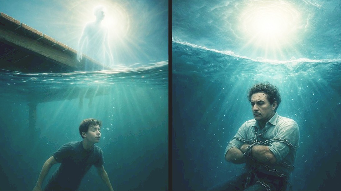 In his autobiography, My Inventions, Tesla describes that, at age 14, he was swimming in the river near his hometown in Croatia. To impress his friends he dove and swam underwater to a diving dock some distance away from the shore, intending to swim under it and emerge where his friends couldn’t see him. He swam until he was sure he was clear of the dock and came to the surface. He banged his head on a beam under the dock. He swam farther and came up again, and hit his head once more. Now out of breath, he had a vision of the entire floating dock and realized that he could come up to a point between the slats and breathe that way.